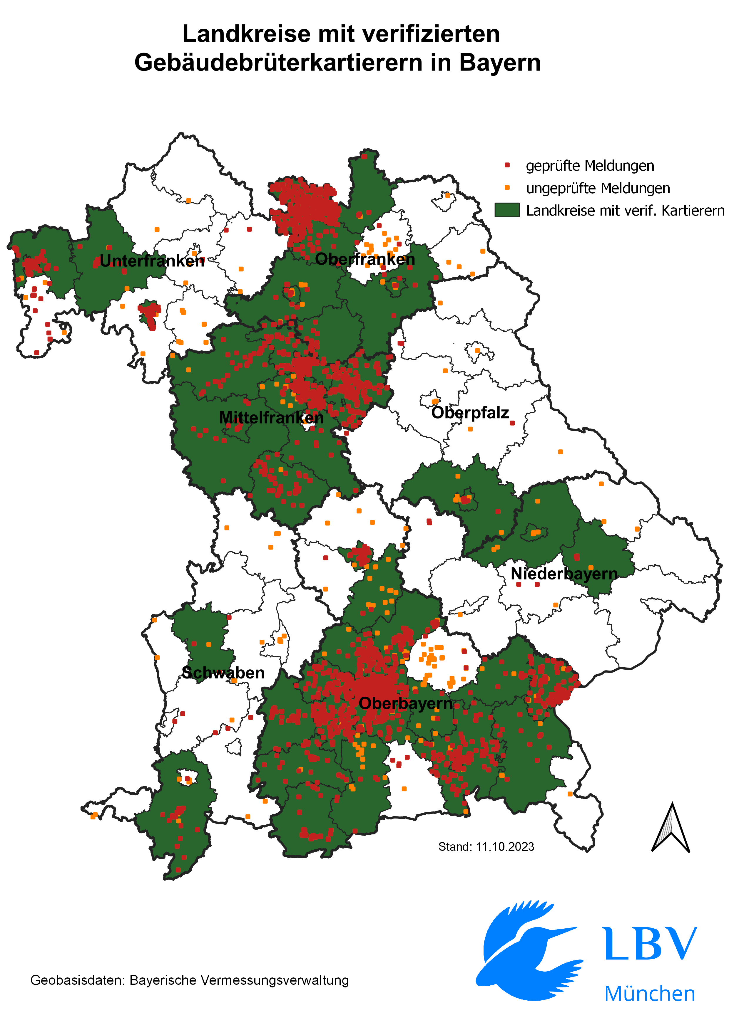 - Sie sind bereit, ungeprüfte Meldungen in der Gebäudebrüterdatenbank zu prüfen