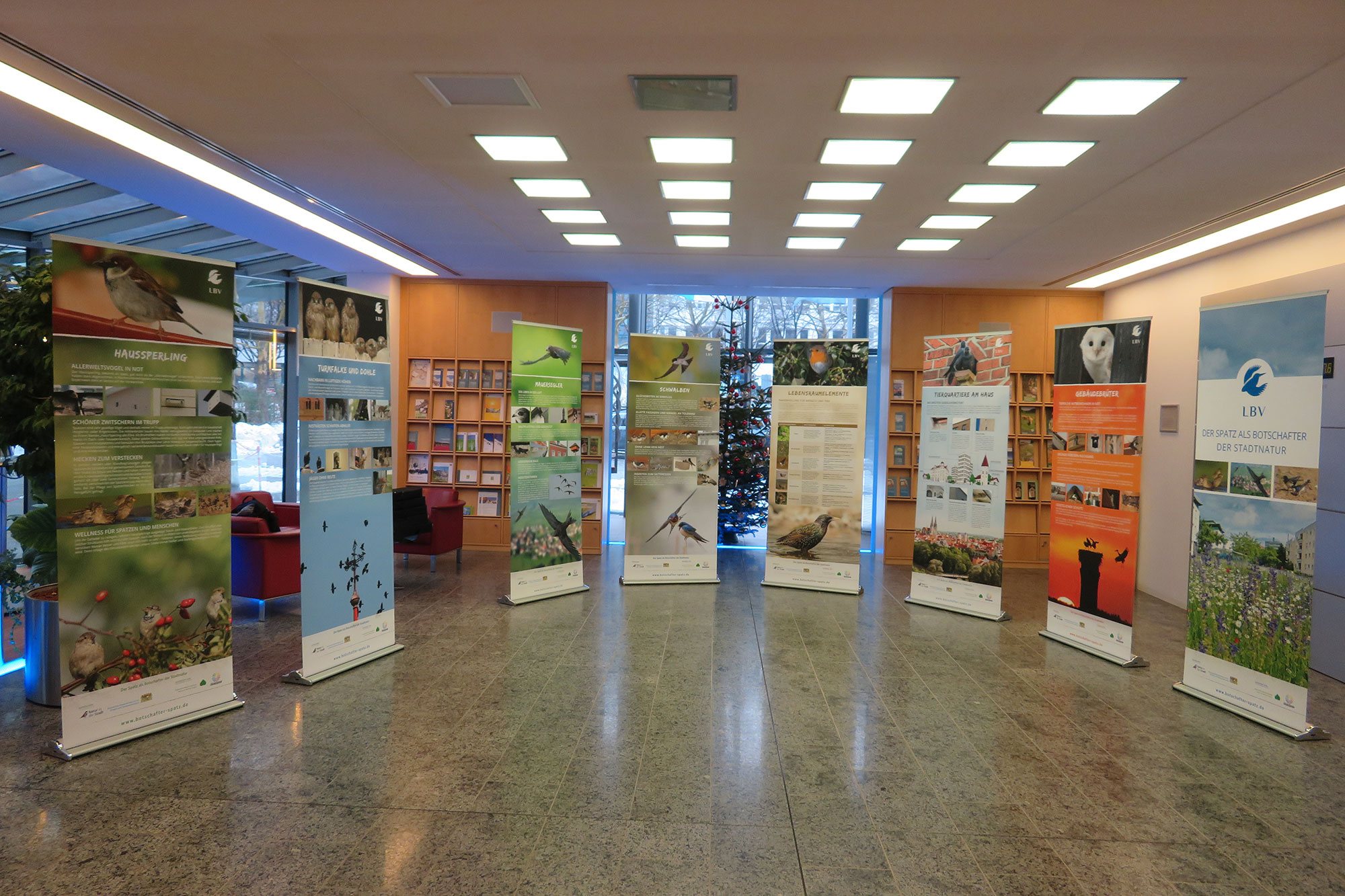 Entstanden sind neun Ausstellungs-Roll-Ups, die nun bayernweit in Behörden, Rathäusern, Messen etc. gezeigt werden. Wir würden uns sehr freuen, die Gebäudebrüterausstellung auch bei Ihnen präsentieren zu können und damit einen positiven Effekt für Ihre Stadtnatur zu bewirken. Sie kann gegen Gebühr bei der Gebäudebrüterkoordinationsstelle ausgeliehen werden.